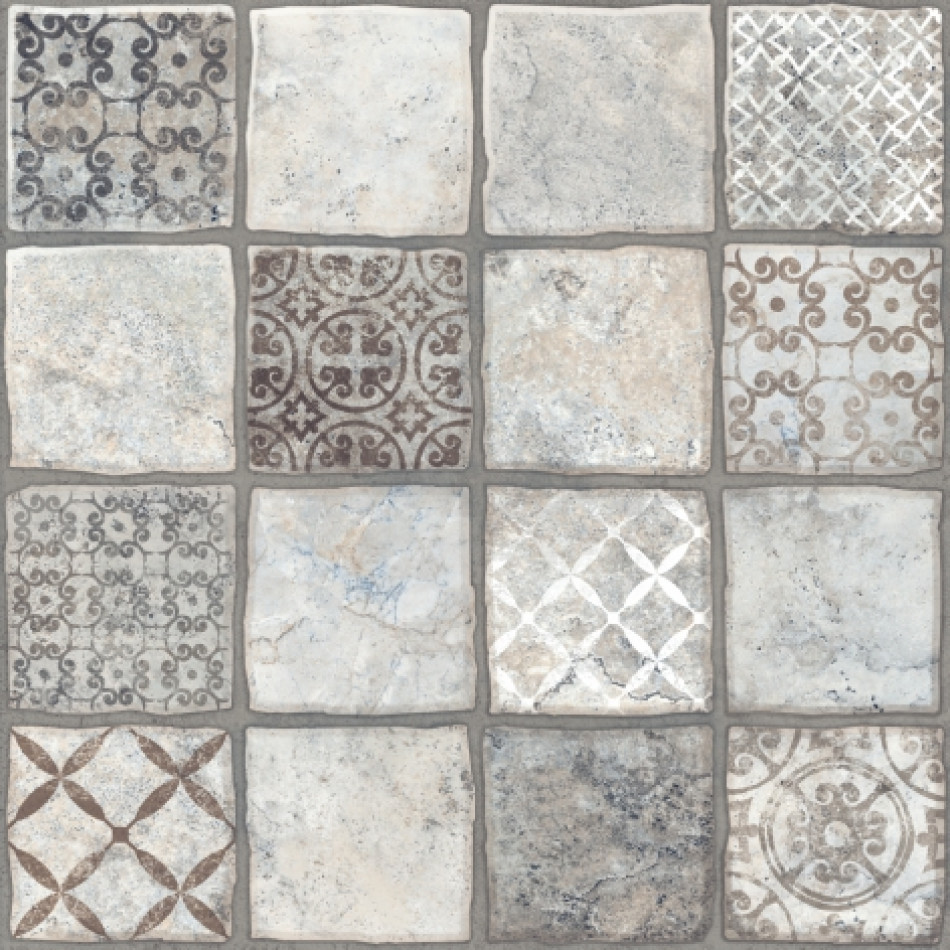 Керамогранит Керамин 40x40 Карфаген 1Д декорированный матовая серый