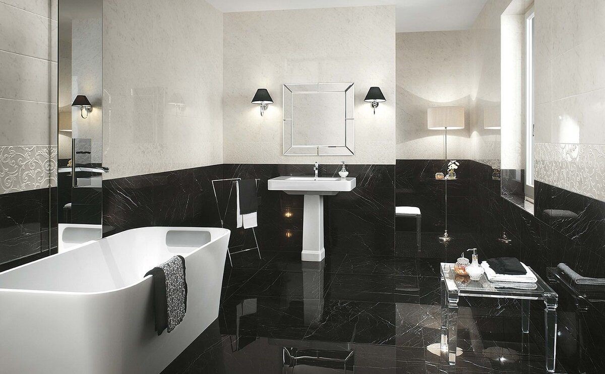 Плитка Fap Ceramiche 150x75 10мм Roma Diamond 150 Nero Reale Brillante Fnef глянцевая черный мрамор
