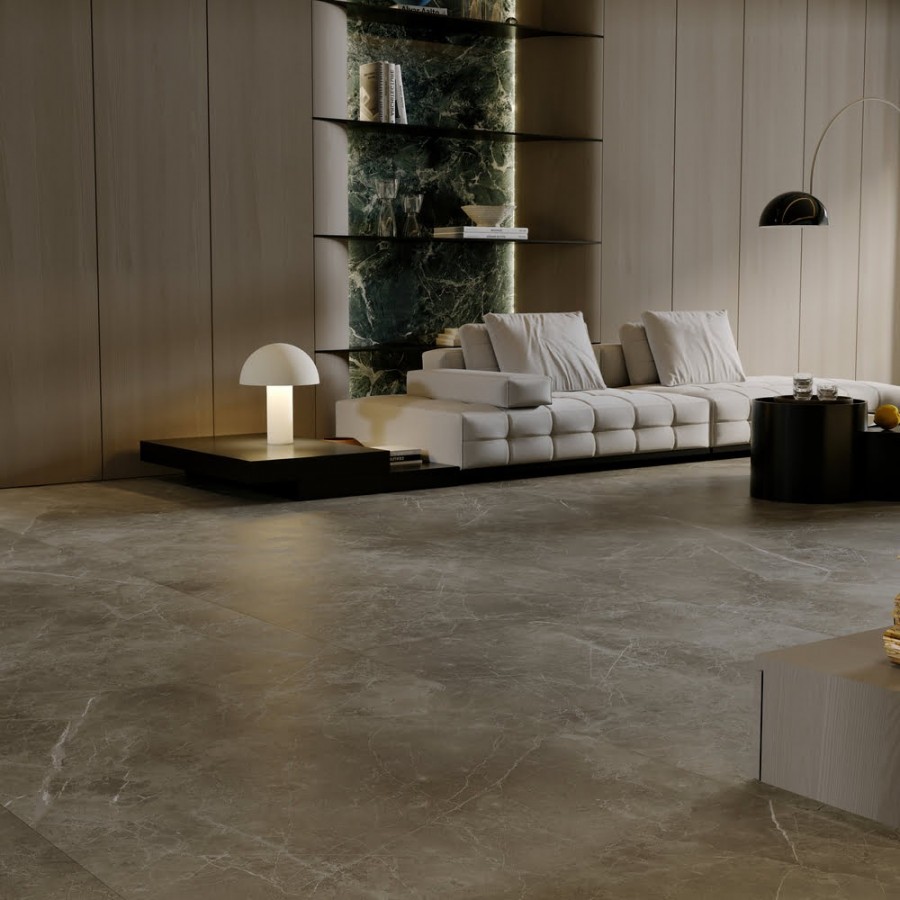 Керамогранит 180x90 Riva Grigio-V натуральный гладкий под мрамор серый 10мм Art##0008202 Zodiac