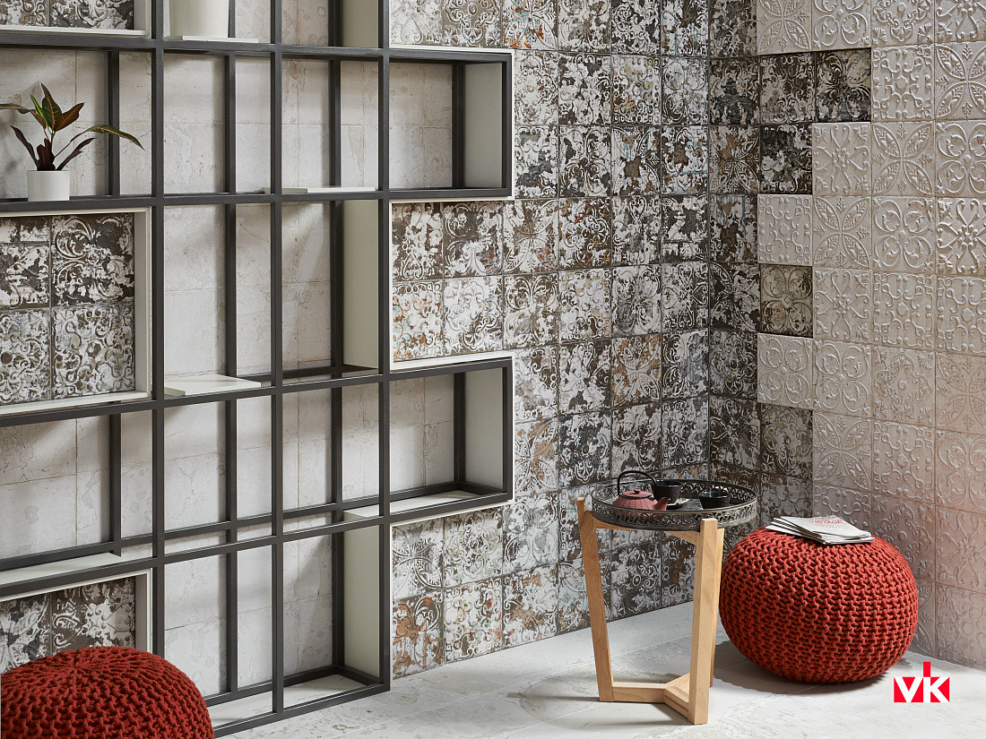 Плитка настенная Aged Silver Ornato матовая серый 20x20 8.5мм Aparici