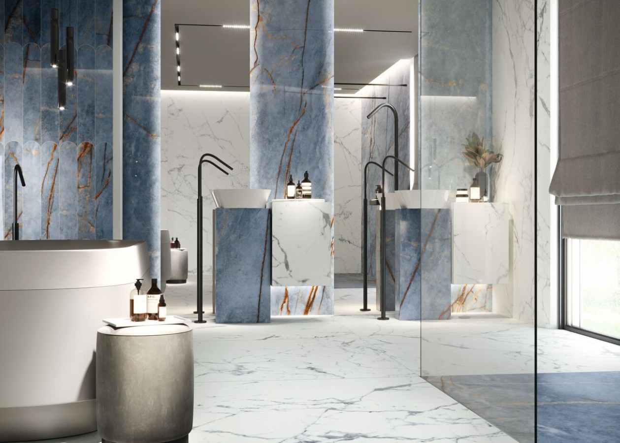 Плитка Rex Ceramiche 280x120 6мм Heritage Luxe Azure Glossy R 774694 глянцевая голубой мрамор
