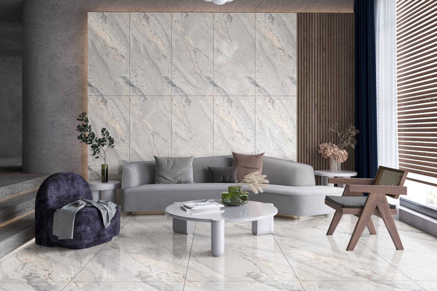 Керамогранит Belleza 120x60 Argenta GREY GRENULLA глянцевая светло-серый
