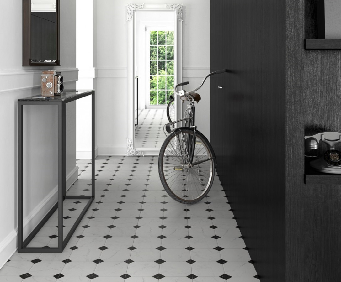 Керамогранит напольная Betera Black-White R матовая белый 58x58 10.0мм El Molino