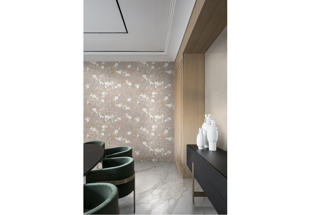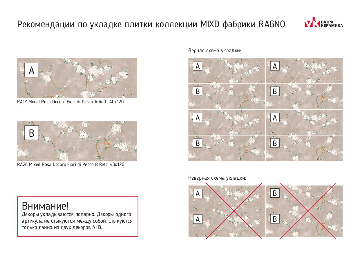 Плитка настенная RA1X Mixed Verde Decoro Fiori di Pesco B Rett. матовая мультиколор 120x40 6.0мм Ragno