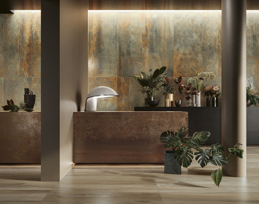 Керамогранит 120x60 9.5мм Construire metallo ruggine ret матовая коричнево-серый Serenissima