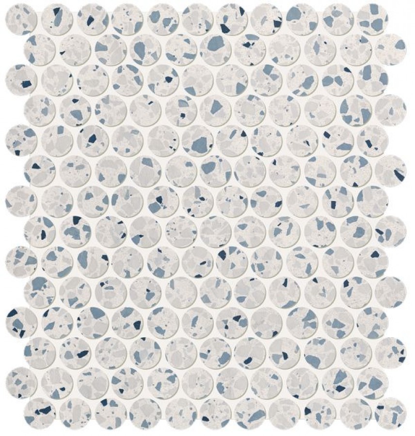 Плитка Fap Ceramiche 33x30 Glim Azzurro Round Mosaico Matt Frub матовая белый, синий терраццо
